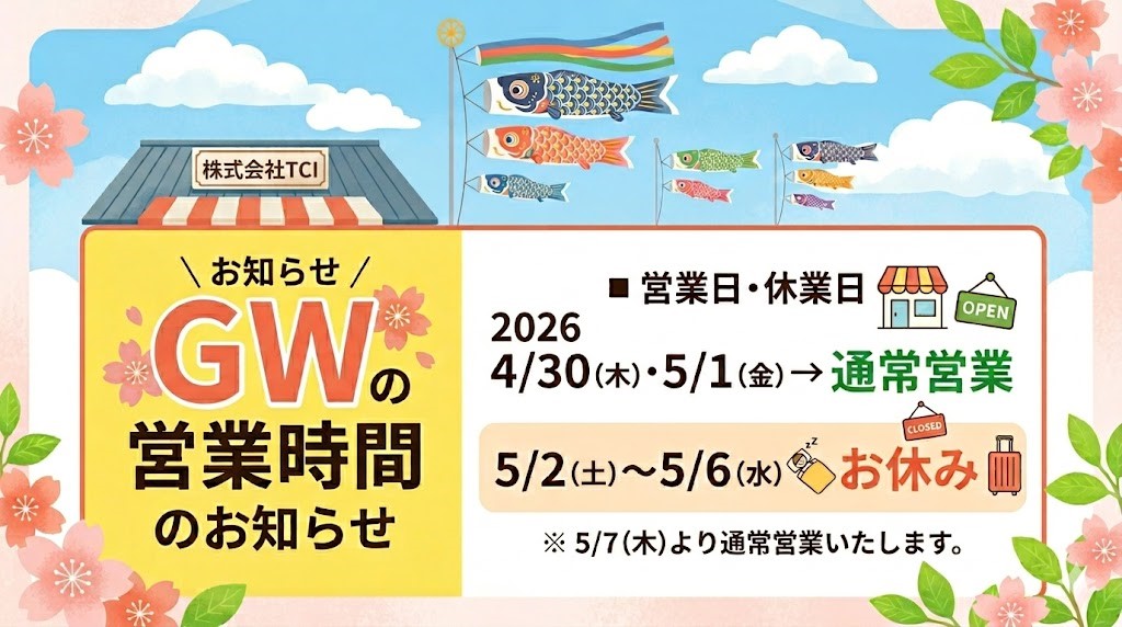 平素は格別のご愛顧を賜り、厚く御礼申し上げます。 誠に勝手ながら、ゴールデンウィーク期間中の営業時間を下記の通りとさせていただきます。